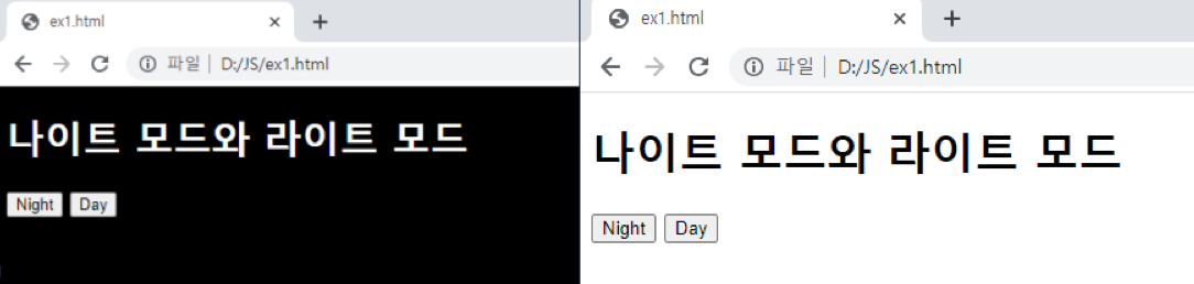 아래 사진은 각각 Night 버튼과 Day 버튼을 클릭했을 때 보여지는 화면이다.